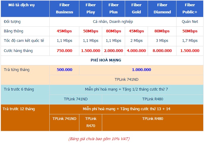 2. Báo giá lắp đặt các gói cáp quang cho hộ gia đình